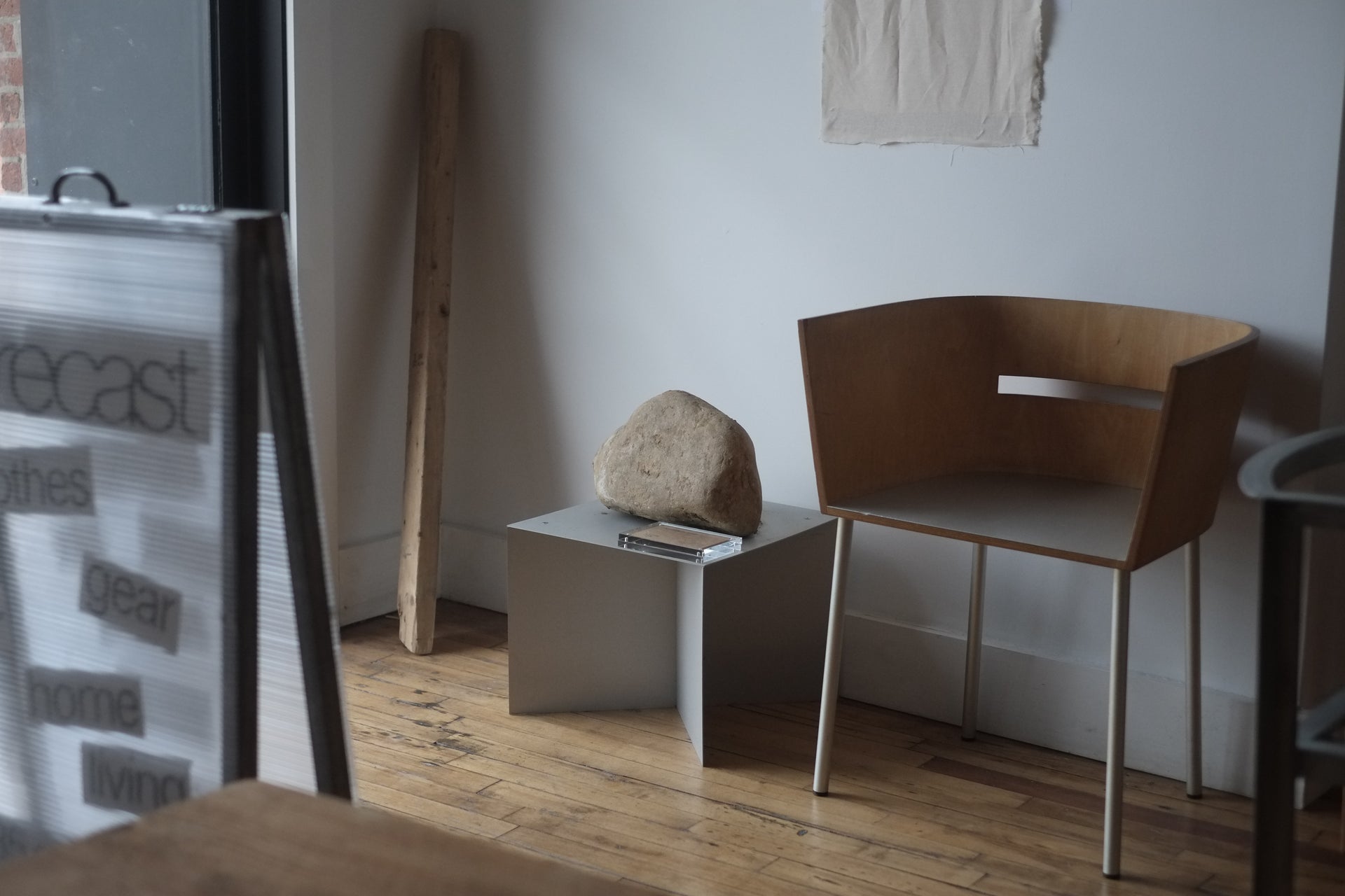 We were tapped to procure a pop-up installation for Greg Laboratory, (an NYC based multidisciplinary clothing company founded on the pursuit of uniforming life's everyday pursuits). Due to his tech forward garments and the industrial elements of the Forecast space in Williamsburg where the event took place; our team decided to procure complementary items from our rental archive as well as a custom display table fabricated from USM Haller components.